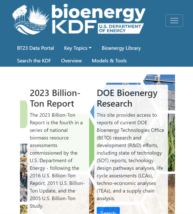 Le Knowledge Discovery Framework (KDF) est une plateforme interactive développée par le Département de l'Énergie des États-Unis (DOE). Il offre une vaste collection de données, de cartes, d'outils d'analyse et de ressources éducatives sur la bioénergie. Les utilisateurs peuvent explorer des informations sur les ressources en biomasse, les technologies de conversion, les impacts environnementaux et les politiques énergétiques.