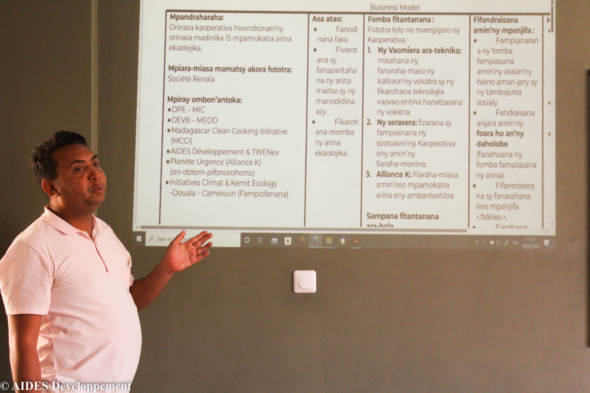 Deux sessions de formation ont été accordées à 13 acteurs de la valorisation énergétique des déchets en mois d’août et septembre 2024, initiées par AIDES Développement afin qu’ils puissent faire perdurer leur entreprise tout en les rentabilisant. Afin de propulser leur capacité de partage d’expériences, des témoignages ont pris place aux sessions. Ce renforcement de capacité a surout apporté ses inputs pour permettre une viabilité financière dans leur projet en travaillant leur business model, sans oublier l’inculcation de la culture entrepreneuriale.